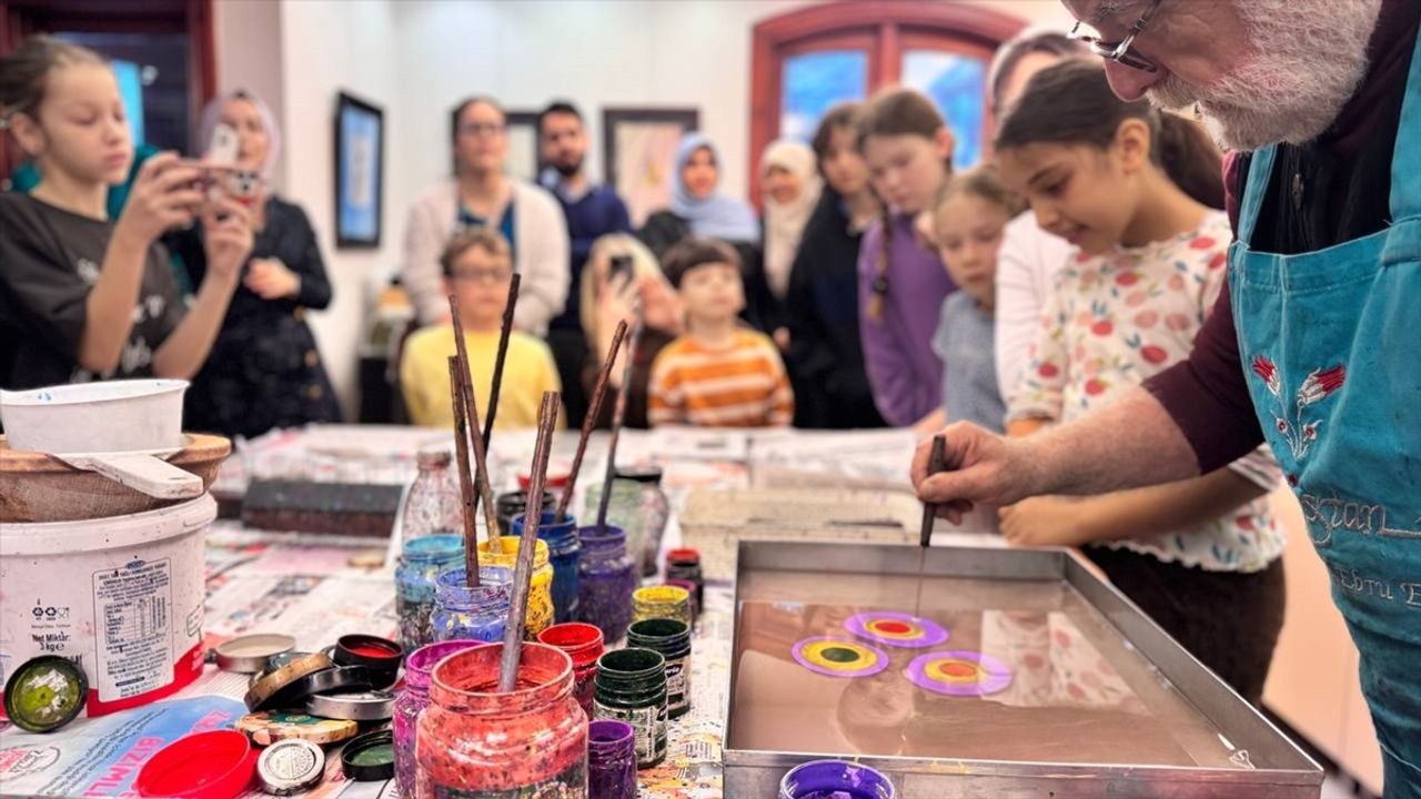İstanbul’da görev yapan yabancı diplomatların aileleri ve çocuklarının Türk kültürünün önemli sanat dallarından ebruyu tanıması amacıyla etkinlik düzenlendi. İstanbul’da, Dışişleri Bakanlığı İstanbul Temsilciliğinde Daire Başkanı Mehmet Zahit Uzun ve eşi Gülten Uzun’un girişimleri ve ebru sanatçısı Hikmet Barutçugil’in ev sahipliğinde düzenlenen etkinliğe, kentte görev yapan konsoloslar ve çocukları katıldı. Barutçugil’in ebru sanatının teknikleri ve Türk kültüründeki yeri hakkında bilgi vermesinin ardından, çocuklar tek tek ebru teknesinin başına geçerek kendi çalışmalarını yaptı. İstanbul’da görev yapan konsoloslar ve ailelerinin katıldığı programda, Türk kültürünün önemli miraslarından biri olan ebru sanatı çocuklara uygulamalı olarak tanıtıldı. Etkinliğin ilk bölümünde Barutçugil, ebru sanatının tarihsel gelişimi, teknik özellikleri ve Türk kültüründeki yeri hakkında bilgi verdi. Ardından çocuklar ebru teknesinin başına geçerek renklerin su yüzeyinde şekillenişine tanıklık etti. Özel boyalarla hazırlanan desenler kâğıda aktarılırken çocuklar kendi eserlerini üretmenin heyecanını yaşadı. Hazırlanan çalışmaların ardından hatıra fotoğrafı çekimi yapıldı ve katılım sertifikaları verildi.